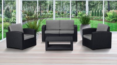 Роскошный комплект мебели имитирующей плетеный ротанг. Выполнен из высококачественного, стойкого к ультрафиолету, пластика без металлического каркаса. Благодаря отсутствию металла устойчив к коррозии и легок для перемещения, в тоже время выдерживает высокие нагрузки и перепады температур. Отличный дизайн, варианты цвета и высокий комфорт будут радовать Вас и служить долгие годы. В состав комплекта входят подушки, на сиденья и спинки, увеличенной толщины и с долговечным наполнителем.