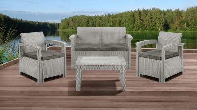 Удобный и привлекательный комплект мебели имитирующей плетеный ротанг. Выполнен из высококачественного, стойкого к ультрафиолету, пластика без металлического каркаса. Благодаря отсутствию металла устойчив к коррозии и легок для перемещения, в тоже время выдерживает высокие нагрузки и перепады температур. Отличный дизайн, варианты цвета и высокий комфорт будут радовать Вас и служить долгие годы. В состав комплекта входят подушки на сиденья с долговечным наполнителем.