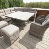 Обеденная группа Сорренто включает в себя угловой модуль на семь мест, два кресла, два пуфика и обеденный стол. Этого вполне достаточно чтобы обеспечить комфортные условия отдыха для шести - одиннадцати человек. Вся мебель выполнена в едином стиле с покрытием из искусственного ротанга. Она может использоваться на даче, в загородном доме и даже в ресторанах.