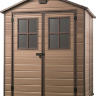 Пластиковый сарай хозблок SCALA 6Х8 от фирмы Keter. Он стал еще более удобным и вместительным. Приобрел двухстворчатые двери, благодаря чему в него стало удобнее загружать достаточно крупные вещи. Также выделяется стильный дизайн. Пластиковая поверхность хозблока имитирует вид дерева и смотрится очень симпатично. Сарай имеет толстые крепкие стены и прочную крышу.