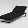 Материалы и цвета: каркас шезлонга выполнен из всесезонного алюминия с порошковым покрытием темно-серого цвета (карбон), подушка обшита уличной тканью чёрного цвета (А13814) с водоотталкивающей пропиткой, толщина подушки 10 см, каркас декорирован веревочным плетением, дополнительно можно приобрести столик со стеклянной столешницей.